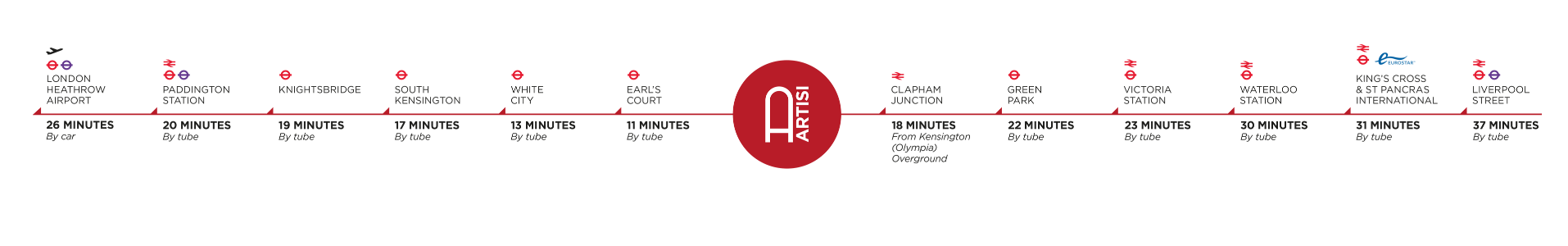 Artisi offers effortless access to the rest of London-and beyond. With four Tube lines (Piccadilly, District, Circle, and Hammersmith & City) just a short walk away, you’re connected to: