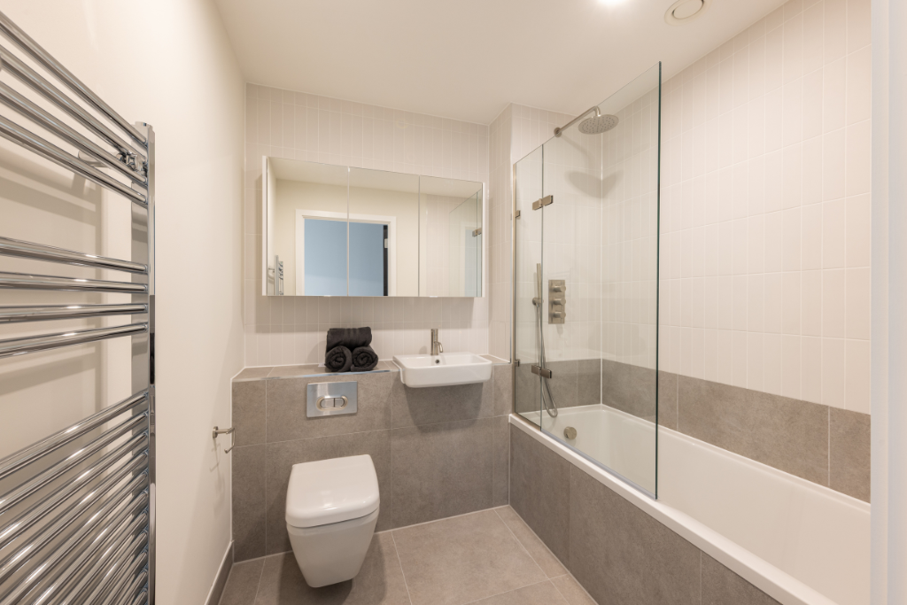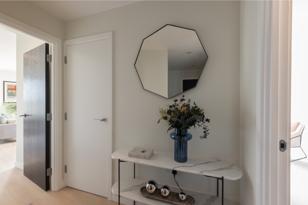 Finished to a high specification, features include underfloor heating, wide plank engineered wood flooring to the communal areas, large format ceramic tiling to the bathroom and carpet to bedrooms. The kitchen includes modern Bosch appliances and Silestone worktops. Bedroom 1 has built-in wardrobes and the bathroom features both a bath and walk-in shower.