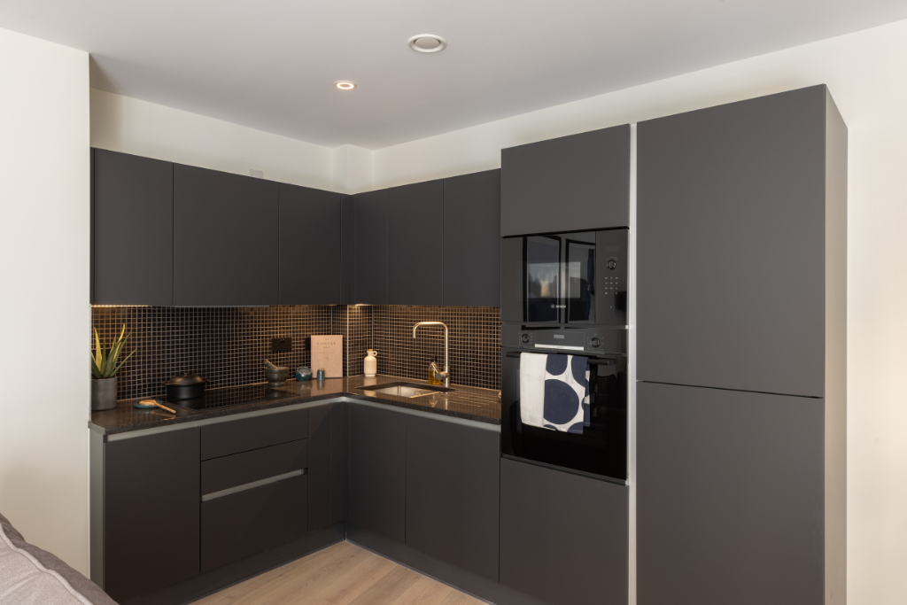 Finished to a high specification, features include underfloor heating, wide plank engineered wood flooring to the communal areas, large format ceramic tiling to the bathroom and carpet to bedrooms. The kitchen includes modern Bosch appliances and Silestone worktops. Bedroom 1 has built-in wardrobes and the bathroom features both a bath and walk-in shower.